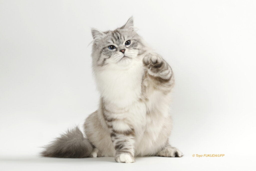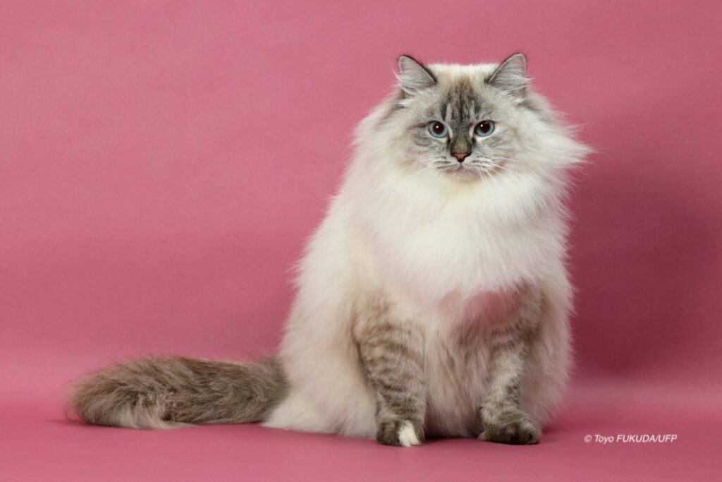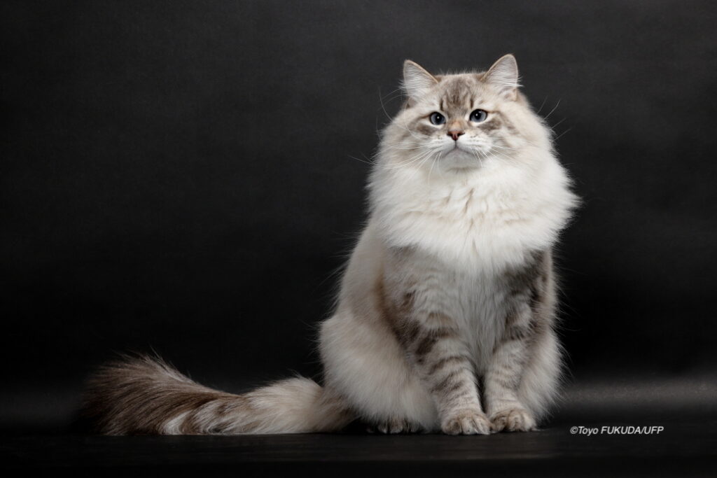 サイベリアンにはさまざまな被毛の色があり、目の色もバラエティーに富んでいます。TICAでは被毛や目の色に関係なく、サイベリアンは1つの猫種しかない扱いですが、ヨーロッパの血統登録機関であるFIFEでは被毛が白く青い目を持つネヴァマスカレードと通常のサイベリアンを分けた猫種としてキャットショーを行っています。